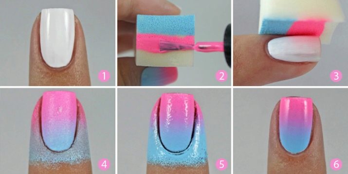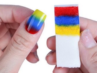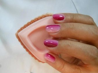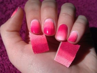 - The consumption of varnish for some types of manicure with a gradient can be significant, in order to avoid its significant losses, it is better not to choose too loose sponges for work.