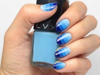 - To create a striped gradient, you just need to draw on the nails the rolling lines of an even or curved appearance. Such lines should be as thin as possible, and the transitions should be darker with each application. This kind of design can be considered both romantic and business.