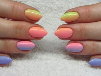 The gradient on the manicure always looks attractive, it will be more than appropriate in various circumstances, the main thing is to choose the colors used correctly. Gradient coating can be created using both bold and catchy, and with the help of rather dull pastel shades.