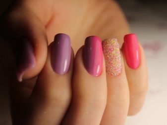 - The color of the nails can change with a visually inconspicuous transition from one nail to the second. Here, usually, several shades are immediately selected in a single color scheme.