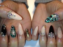 If a client is going to a festive event, then it is necessary to decorate the nails with special rhinestones and shiny varnish, which will add solemnity and create a sense of celebration.