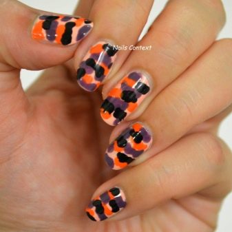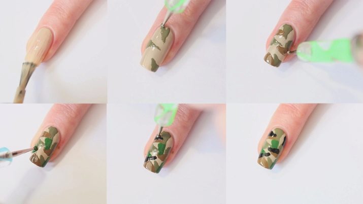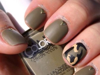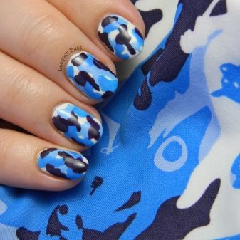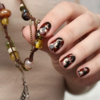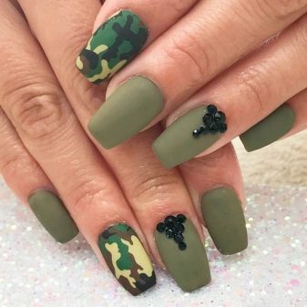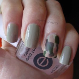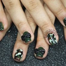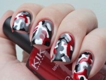 One of the latest popular ideas was to apply a spotty gamut on just a few fingers., and covering the rest with monophonic varnish, which can be decorated with unusual military drawings, inscriptions or insignia of military distinction.