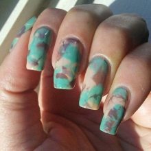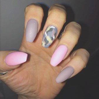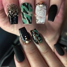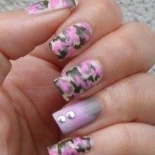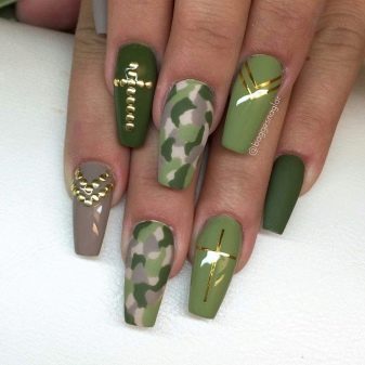 Militaristic style is a popular trend in the world of fashion. Designers use military motifs not only when creating collections of clothes, shoes, accessories and make-up, but also in the decorative design of nails. This direction is in demand and popular among girls of different ages. Modern designers combine camouflage manicure not only with coarse and shapeless clothes, but also with elegant outfits for festive events and everyday life. A wide color gamut allows you to create unique works that can surprise even the most demanding and creative fashionistas, and experienced craftsmen and decorators will create unique patterns, taking into account all the wishes of customers.