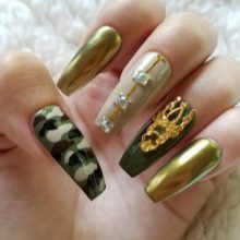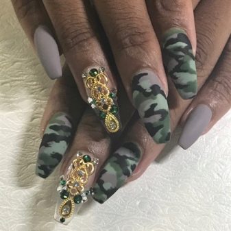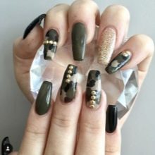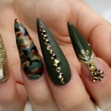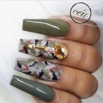 A huge number of styles, trends and original ideas enable fashionistas to create a unique manicure.which will match the selected image. One of the unusual areas is the military style, which confidently occupies a leading position in the ranking of popular manicures. Creating your own unique image, you need to not only think about the chosen pattern, but also competently approach the choice of a specialist who will help to realize all your wishes.