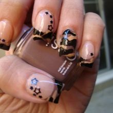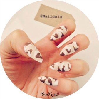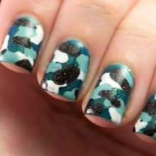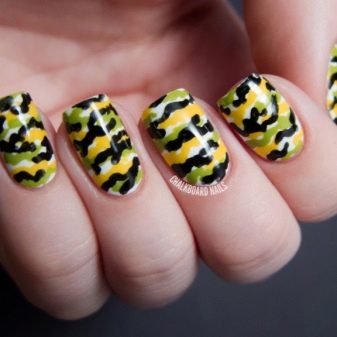 Designers developed this nail design for women who serve in the armed forces and are defenders of the homeland. After a short period of time, unusual representatives of the weaker sex liked the unusual nail graphics.