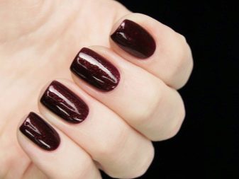 - Saturated shellac tones. The coating is applied in 2 layers, at the same time dark tones are chosen, which will give the nails a relief outline and maximum expressiveness. It is interesting in itself, so there is no need to use additional decor elements. Dark nail polish will look best on short nails.