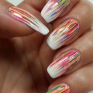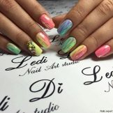 Acid tones can not be combined with rhinestones: such a neighborhood is too sharp, it does not look beautiful.For marshmallow techniques, lacquers glowing in the dark can also be used, which will especially appeal to young fashionistas.