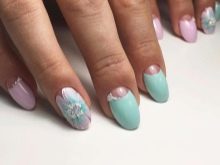 Marshmallow manicure pleases with a fashionable combination of pastel colors and an interesting design of accent nails.