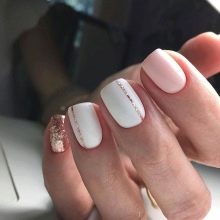 In addition, the best pigments for summer manicure include shades of the neutral group and their combination among themselves. By themselves, they do not carry an emotional burden, and therefore they can easily complement any woman’s outfit with color. In addition, they are perfectly combined with tones of greenery, which allows them to complement most onions for the summer.