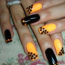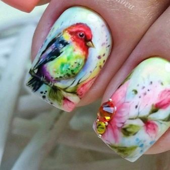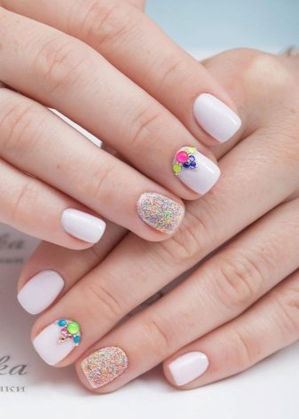 Nails painted in a particular technique often need decoration, which allows you to completely change the perception of manicure and indicate its belonging not only to any season, but even to the month. You can do this:
