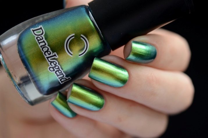But still, more often, choosing a varnish for a chameleon manicure, girls give preference to more expensive and high-quality varnishes. These include pigment for nail design Dance legend.