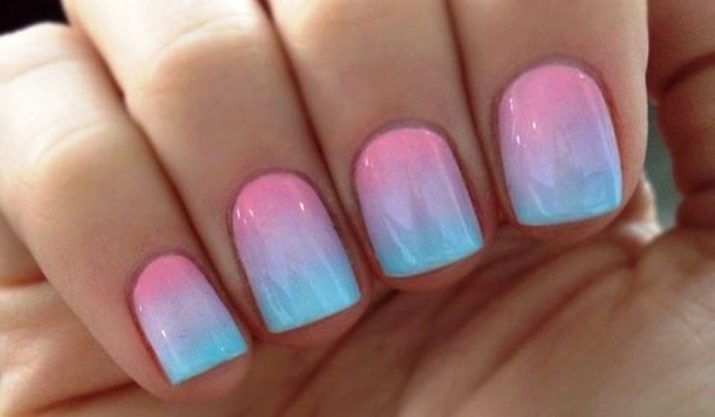 A great result is obtained with a blue tint of a chameleon. These delicate shades will appeal to any fashionista. Such a design would be a great option for both everyday and manicure on the way out.