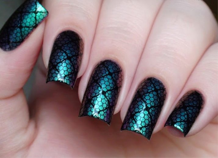 An incredibly beautiful design is learned from the green chameleon varnish. The combination of turquoise and gold shades looks flawless. Not every girl will guess to combine these shades when creating a gradient. But when applying a thermal varnish, you do not need to guess about anything, the temperature itself will decide with which manicure you should go.