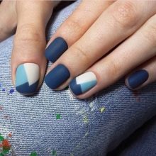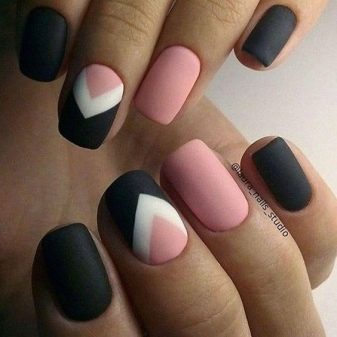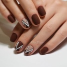 - matte tone with geometric lines looks very good on short nails - for example, triangles located in one corner have become the trend of the year;