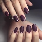 Wine, the color of Bordeaux or Marsala at the peak of popularity in recent years. These tones harmoniously fit into any image and always look extremely respectable. They are suitable for almond-shaped nails, but on short neat ones they can be no less stylish.