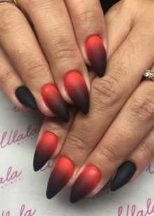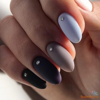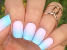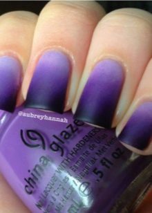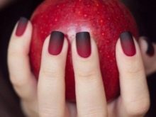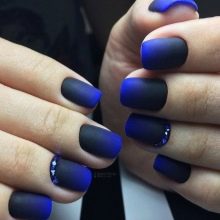 The gradient looks very stylish on the nails. Traditionally, it is made glossy, but in a matte finish it is much brighter and more unusual. Ombre is best designed from lighter to darker. On elongated nails, this coating option will look very elegant and expensive.
