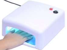 After the nails are prepared, a base is applied, which is then dried in a special UV lamp.
