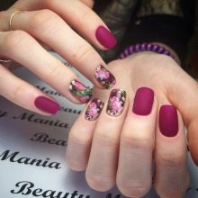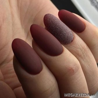 As for the design, the mod here does not establish any restrictions. At the peak of popularity and monophonic coating, and combined. This year's matte manicure combines well with many popular techniques - ombre, French, the effect of broken glass and cat's eye, as well as marble painting.
