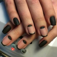 Lunar cover for many years out of competition. Black matte color applied to the holes of the nail plates looks especially stylish.
