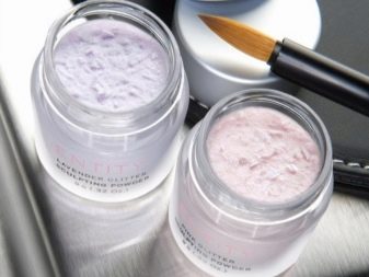 Nail industry experts also advise using acrylic powder. In order to make such a coating, it is necessary to carry out a set of standard manipulations: apply a base, then color, and then top. It does not need to be dried right away, but it should be covered with manicure powder powder, and only then put your fingers in the manicure lamp. When the top dries, gently sweep the powder residue with a special brush.