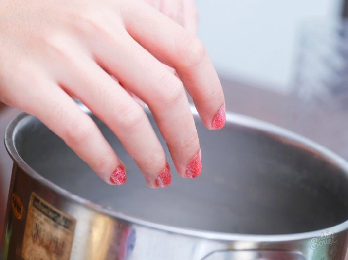 Soda must be sieved through a fine strainer. If this is not done, then small lumps can significantly worsen the appearance of the final coating. Then you should paint the nails on one hand, for a while leave the second hand without varnish - this is necessary so that it does not freeze before time.