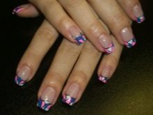- For the basis of manicure, you need to select bright and juicy shades. Their contour is outlined in one color with a thin brush or liner.
