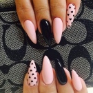 If you want to use rhinestones, then sharp nails should be decorated only on the base. So nail art will look stylish and attractive. The pattern will look relevant both on the entire nail plate, and on its separate part. You can use various improvised tools to implement the ideal patterns: toothpicks, needles, dots.
