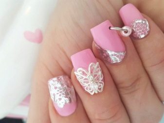 For gentle manicure and decoration, appropriate ones will be required - thin, graceful, unobtrusive. The shine of all kinds of coatings with sparkles, metallic effect, transparent or colored crystals are emphasized.