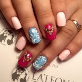 To add charm to nails the jacket strewn with sand will help. Rhinestones will give a special piquancy.