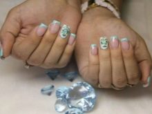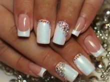 French with rhinestones is a classic version of nail artwhich is perfect for weddings and romantic looks. Laconicism of the base allows you to experiment with the color of stones, shape, size and location. The palette can be in the tone of the selected background, or contrast.A very stylish solution is a combination of French manicure with stones of an unusual shape: hearts, stars, butterflies, flowers. More restrained and sophisticated options are rhinestones of geometric shapes: ovals, triangles, squares.