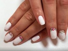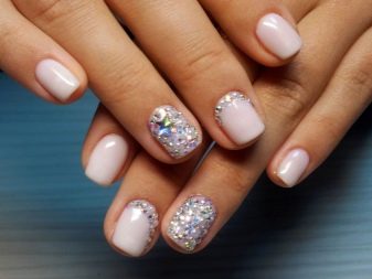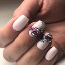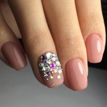 On short nails, stones can also look great, if you do not choose a complex and massive decor. Airy light notes will be much more appropriate.