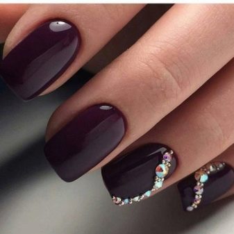 There are many options for restrained and elegant nail art with the use of such decor. You can make a beautiful manicure with stones for both a bright evening look and a rigorous daily exit.