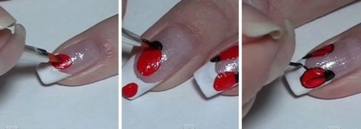 Take a brush and red polish, draw a circle. The number of circles you adjust yourself based on the number of insects that you want to portray.