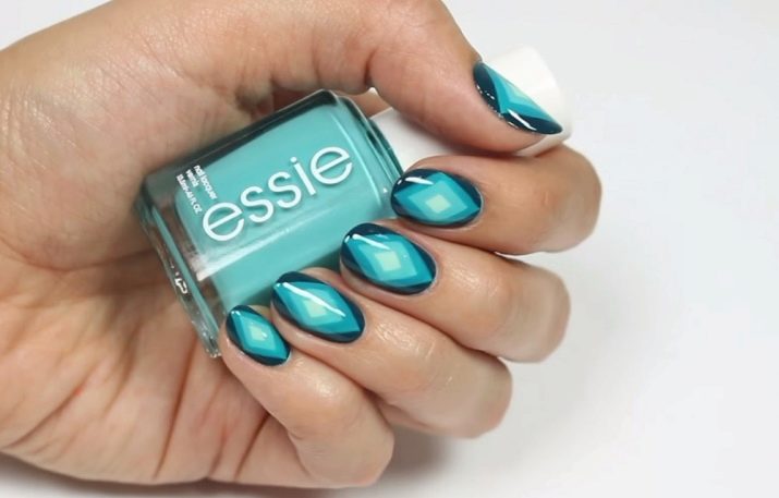 In addition, you can put a rhombus in the center of the nail, for example, making it blue. And form the rest of the design “around” it, circling each subsequent circuit with an ever darker shade of blue. You get a cross between the gradient and the optical pattern.