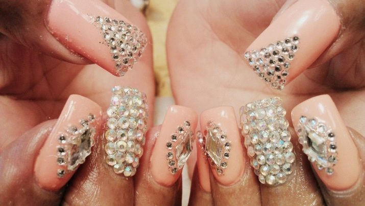 Rhinestones and stones for decoration of nails are also produced in the form of rhombuses. They can also lay out patterns or emphasize a lacquered ornament.