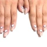 Manicure with triangles is among the ten best nail art designs today. This design option seems minimalistic, but it is quite capable of decorating any female image, regardless of her age and style of clothing.