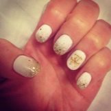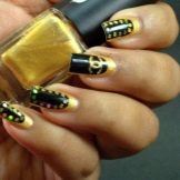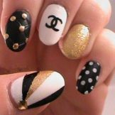 Restrained, refined, elegant, appropriate in any case - of course, we are talking about the Chanel style. Speaking of manicure, masters prefer black and white colors, and the image of the famous bag is popular as a decor. Another option for jewelry can be golden glitter or coating with such a varnish interspersed with golden particles of one nail, which will make the image much more original.