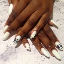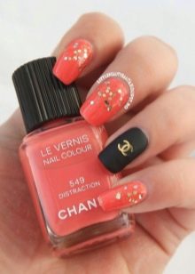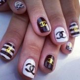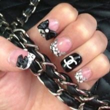 When performing a Chanel-style manicure, basic shades are used - black, pink, silver or gold, white. Most often they use the Chanel brand name or geometric shapes that are used by this brand.