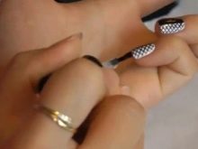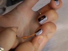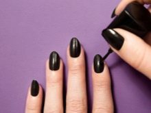 - After thoroughly drying, the following is applied black varnish on half of each nail. Only the ring fingers are painted two-thirds. If necessary, the varnish is also applied in a couple of layers, then dried.