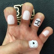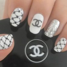 The world famous symbol is used as the main element of manicure. The logo of the Chanel house is two intertwined letters C, which have become the embodiment of classics and elegance. Often the logo is applied to the ring finger.