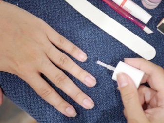 - Having finished with the preparation, it is necessary to apply the basic tool on the nails.