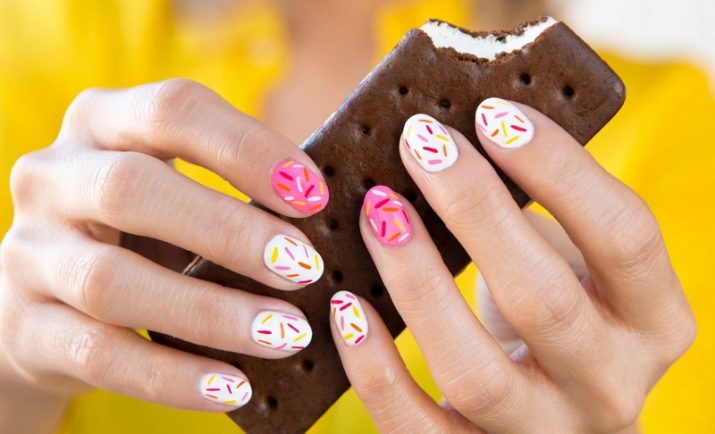 Often, ladies choose drawings in the form of butterflies, dragonflies, hearts, lace. They also emphasize femininity and tenderness. It is better to create such variations from pale pink tones in combination with silver, gold, white. Do not forget about the time of year. In winter, you can use snowflakes as a decoration, and in spring and summer - leaves, twigs, flowers, berries. In the fall, raindrops and umbrellas will be relevant. Stylish manicure will turn out if used in the design of polka dots. Such a composition will be easy to make on your own. Nail art will add playfulness to any manicure.