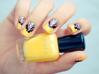 Representatives of Bohemia love to depict ethnic ornaments on their nails. The main motives of the “boho”: drawings of the Indians, oriental patterns, symbols of Egypt, drawings of Maya and Sanskrit.