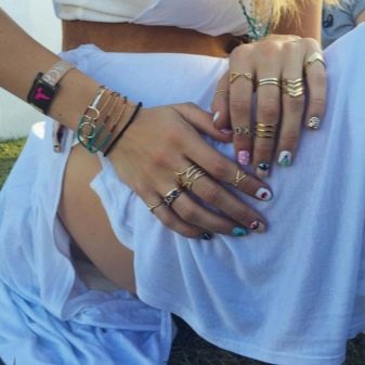 - alternation of different colors on the nails (white / black, calm tones and contrasting shades);