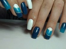 This coating has an amazing depth of tones and is most often performed in one color scheme. The use of dark and light shades when coating creates a volume effect, which in the case of the blue gamut looks like a deep water column. This option is also combined with most decorations, but it is in this design that it is important not to overdo it, since nails without decorations are saturated with details, albeit visual.
