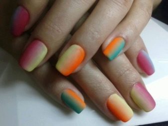 Nails painted in the color of your accessories will look interesting and unusual. Do-it-yourself gradient manicure will also allow you to save your finances, because in beauty salons such a design is quite expensive. Do not be afraid to experiment and improve your image, following unusual fashion trends.