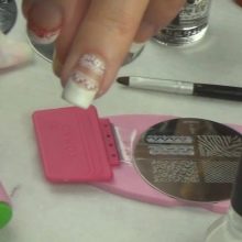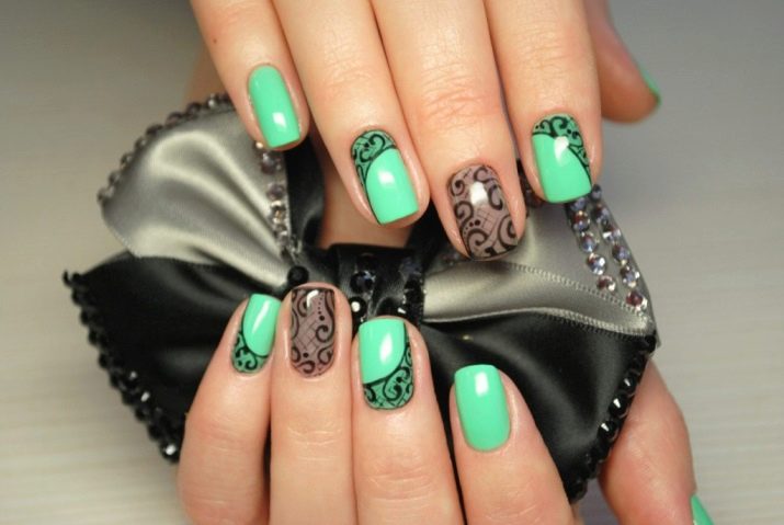 If you do not want to bother with stickers, you can replace the tedious drawing with a cunning invention - stamping. These are ready-made templates with a variety of engraving patterns. The patterns are transferred from them by means of a special roller, which allows you to make an image on a translucent coating basis in a matter of seconds. At the same time, the lines of such drawings are always smooth and clean, due to which the manicure looks professional.