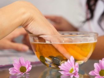 Herbs are mixed in one container and poured with boiling water. Insist, cool, then the infusion overflows into a container convenient for the procedures. Hands are lowered into the prepared herbal liquid for half an hour. The effect will be noticeable after the first application.
