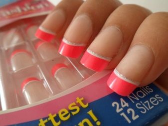 False nails, in principle, are not inferior to building in the first few days. But after the woman feels a certain discomfort. The glued surface will begin to recede, the beauty of the design will fade, and the pattern will be washed off from frequent contact with water. In any case, both of these options are win-win for an important event.