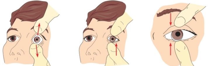 - The eyelids of the eye from which the lens is removed must be well moved apart. To do this, both fingers of one hand should be placed on the upper and lower eyelids.In this case, the fingers need to be positioned closer to the border of hair growth and eyelids slightly extended.